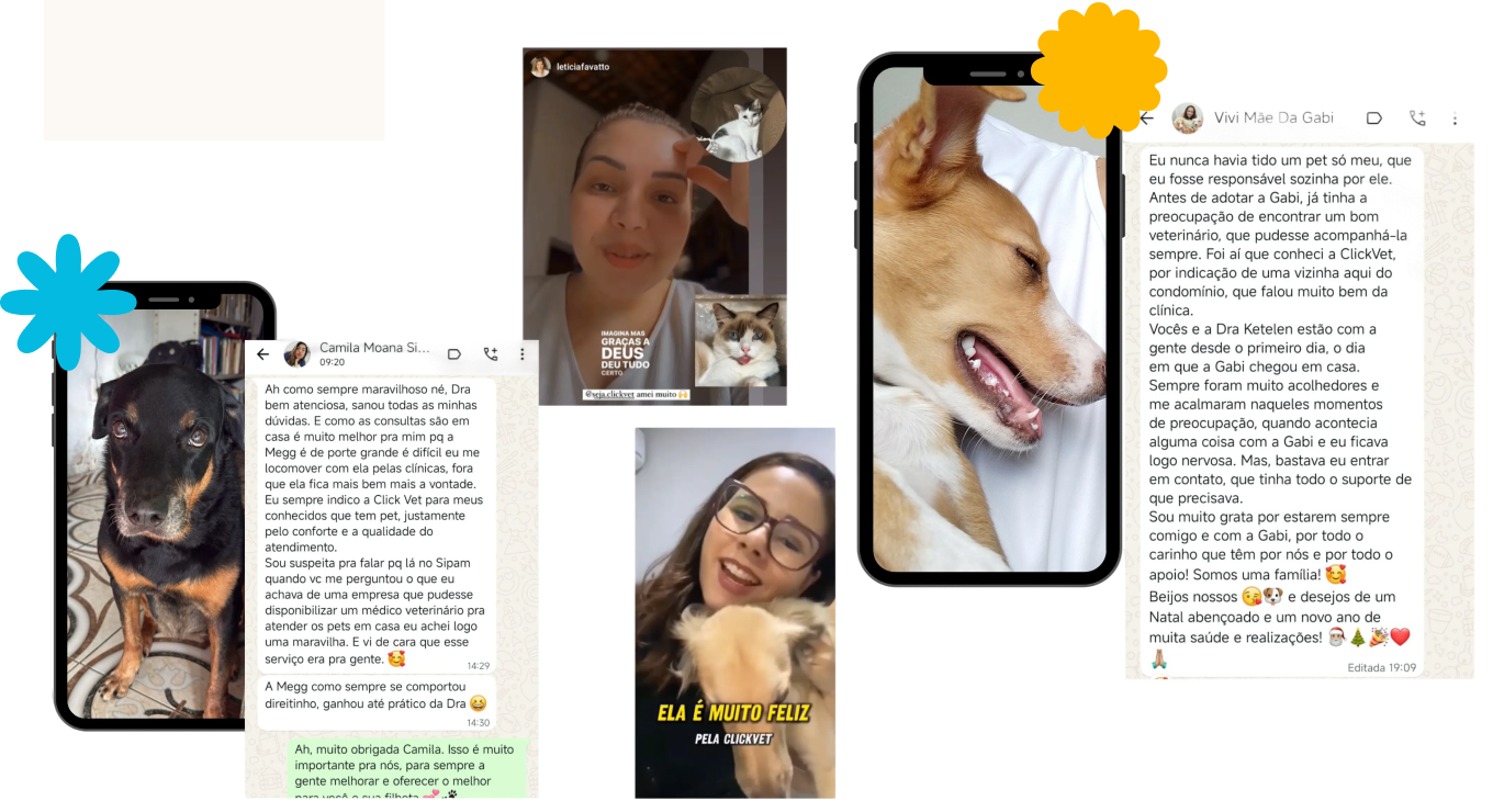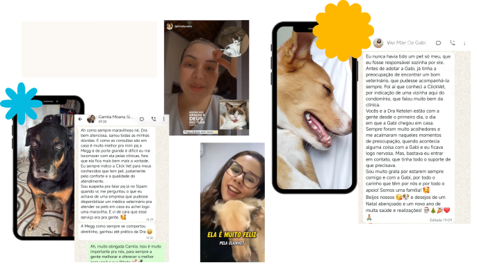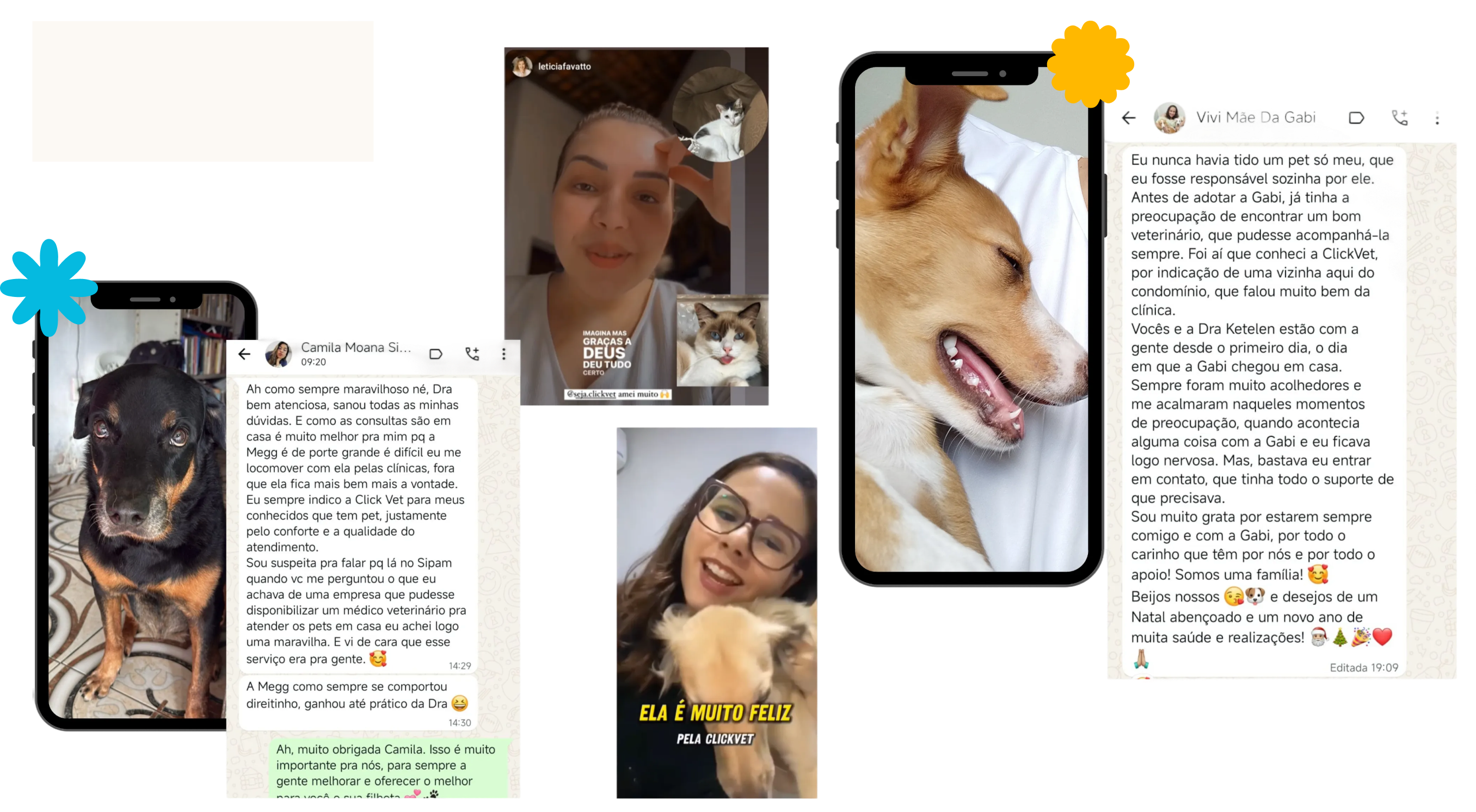 Hoje, a ClickVet é uma healthtech pet que conecta tutores a veterinários e serviços parceiros, sempre com foco no bem-estar de toda a família. Nossa missão é prolongar a vida dos pets com saúde e tranquilidade, levando cuidado de qualidade direto para dentro do lar.