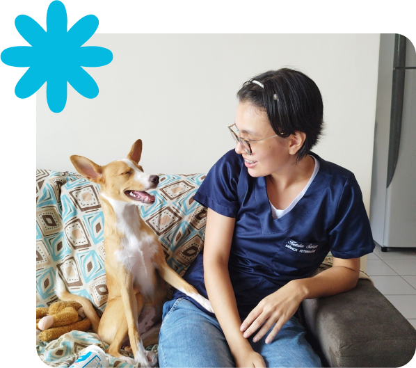 O médico vai até sua casa, evitando deslocamentos, filas e o estresse para o pet.